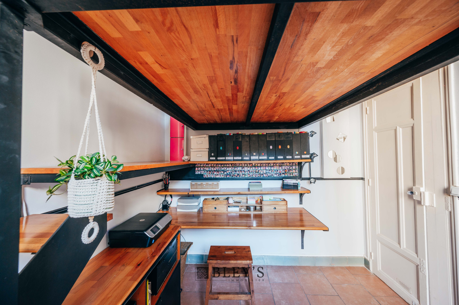 Une cave avec buanderie de 7,42m² et une chambre de bonne de 5,21m² complètent le bien.